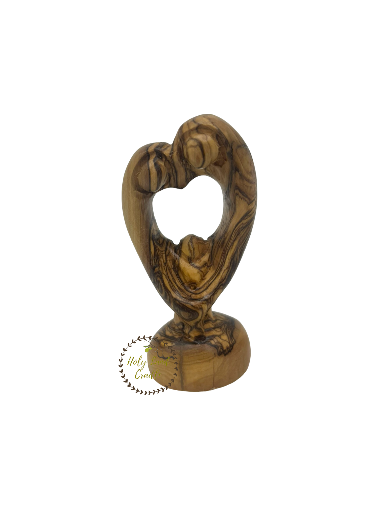 ❤️ Olive Wood Abstract Holy Family – Heart Shaped