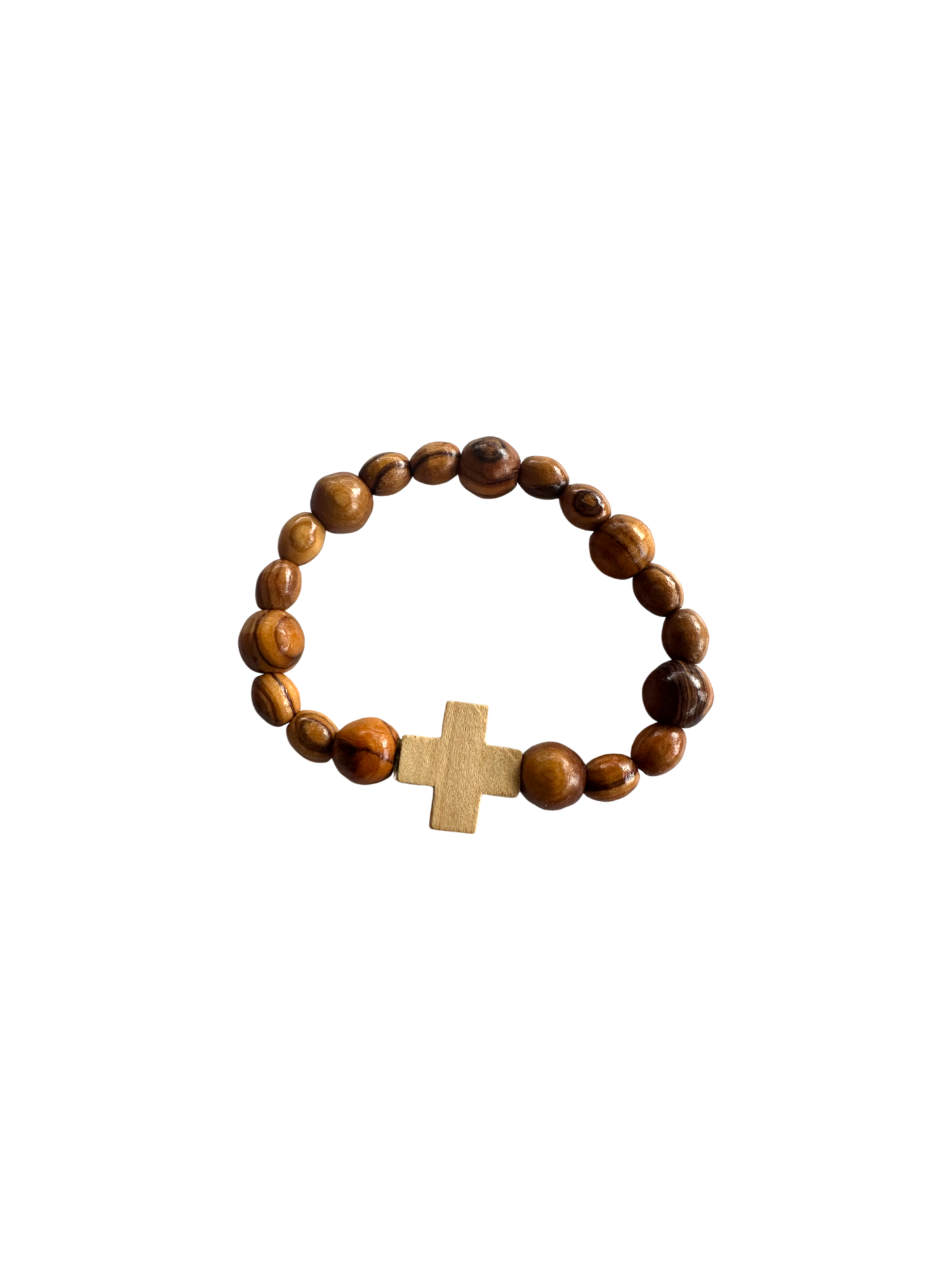 Each bracelet is made from authentic olive wood pruned from trees rooted in the hills of Bethlehem, just steps from where Jesus was born. The natural grain of the wood and the warmth of its tone make every piece unique—just like the faith of the person who wears it.