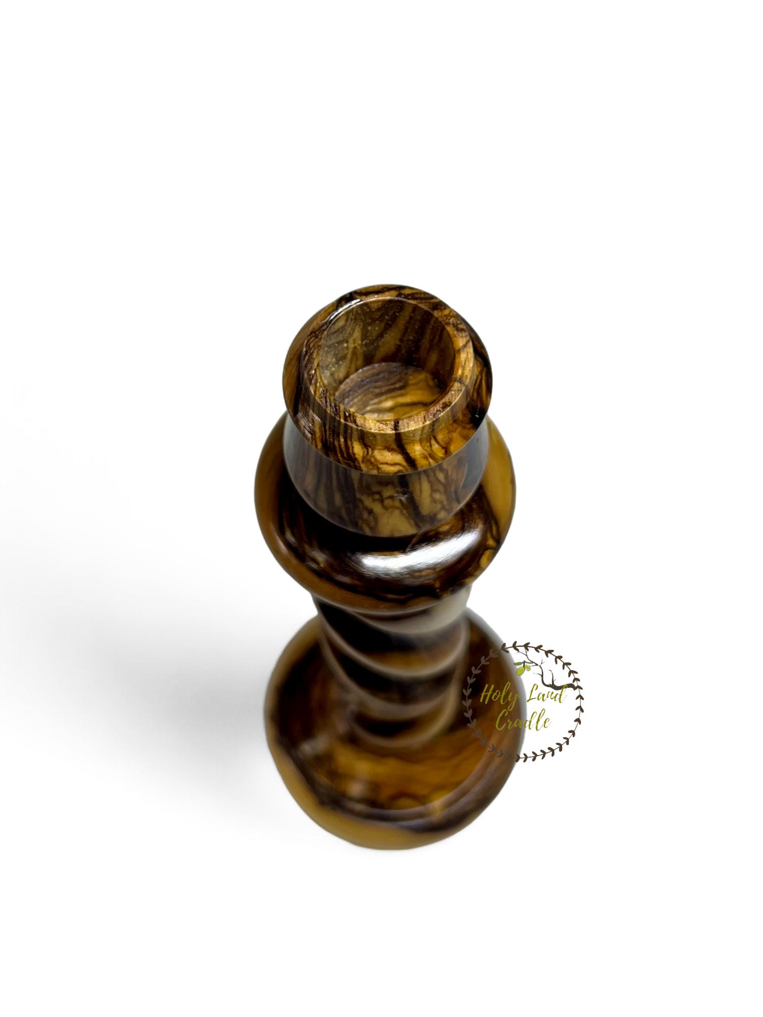 Illuminate your space with elegance and tradition using these handcrafted Olive Wood Spiral Candlesticks. Made in Bethlehem—the Holy Land—each candlestick is skillfully carved from genuine olive wood, showcasing a graceful spiral design that adds timeless beauty to any setting.