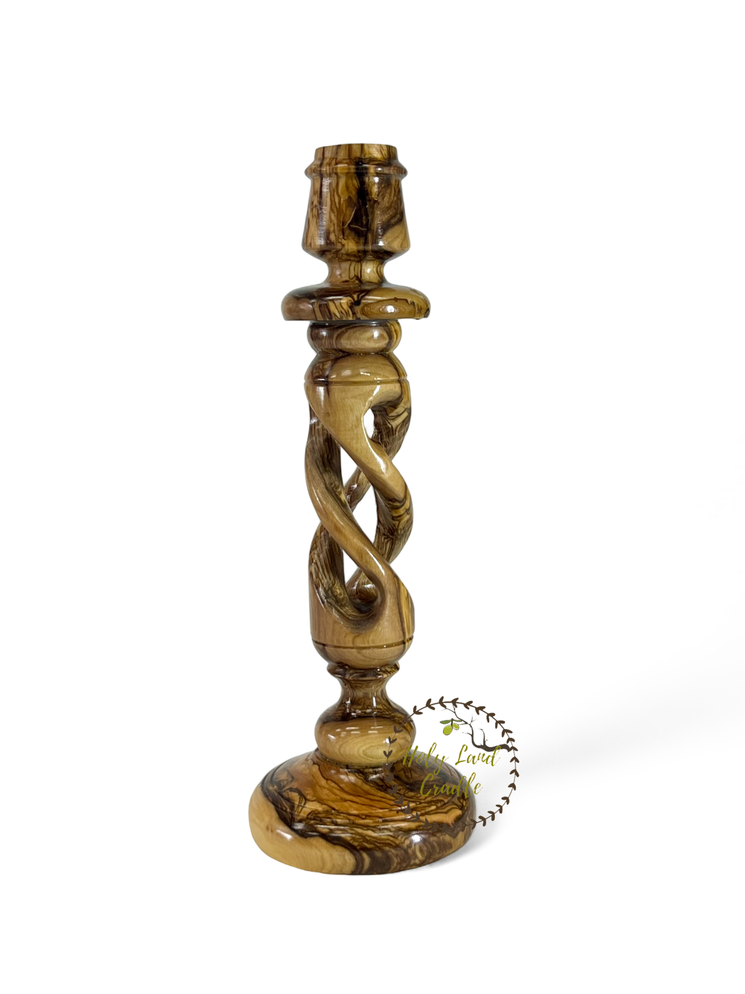 The natural grain of the olive wood radiates warmth and character, creating a serene glow when paired with your favorite candles. The spiral form not only enhances visual appeal but also offers stability and durability for everyday use or special occasions.