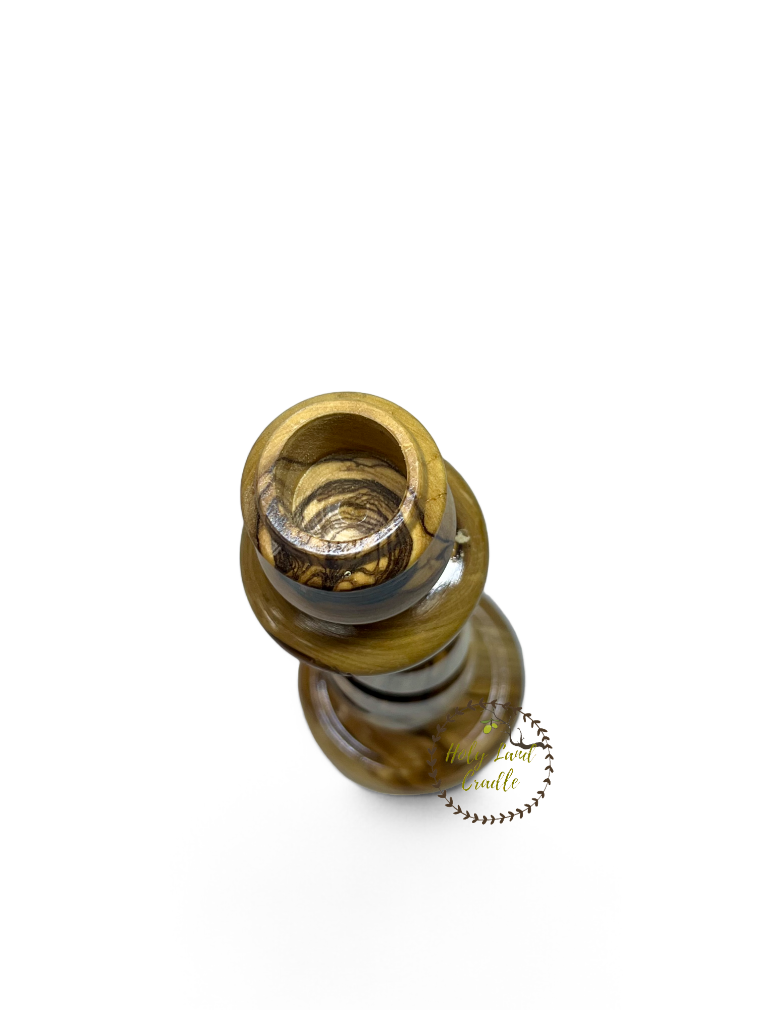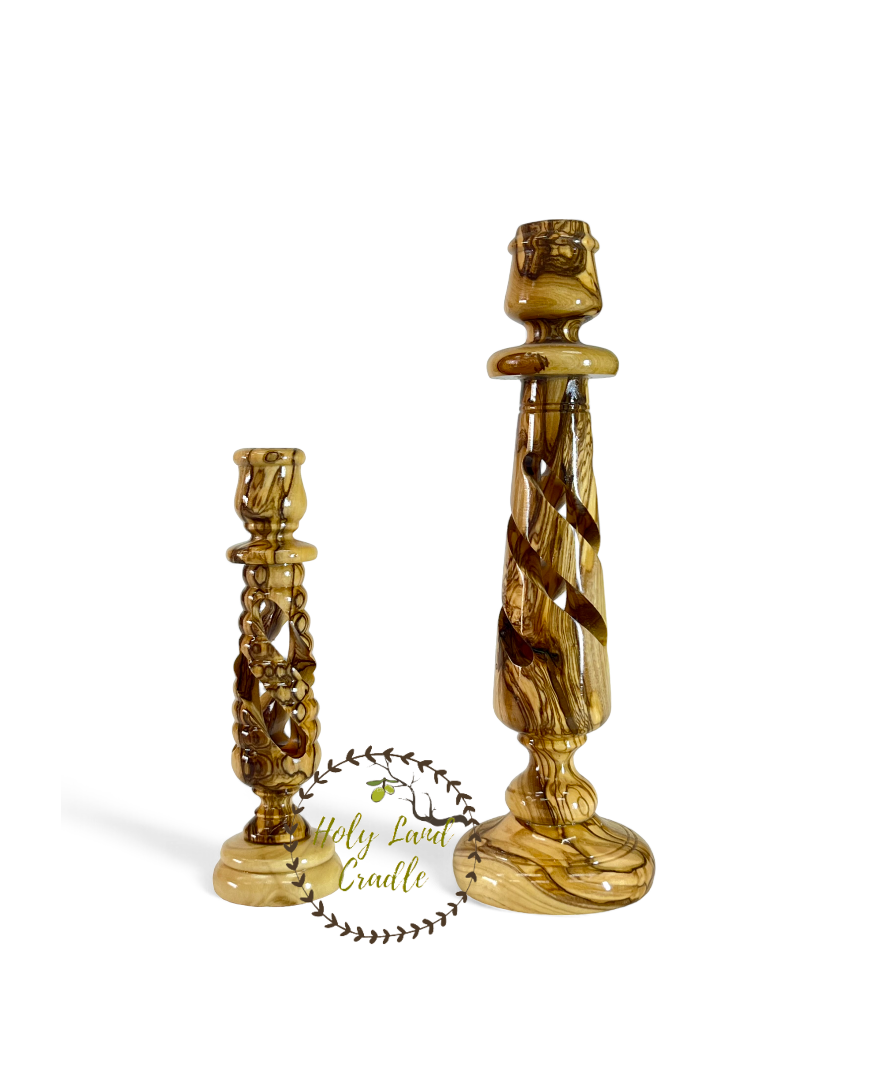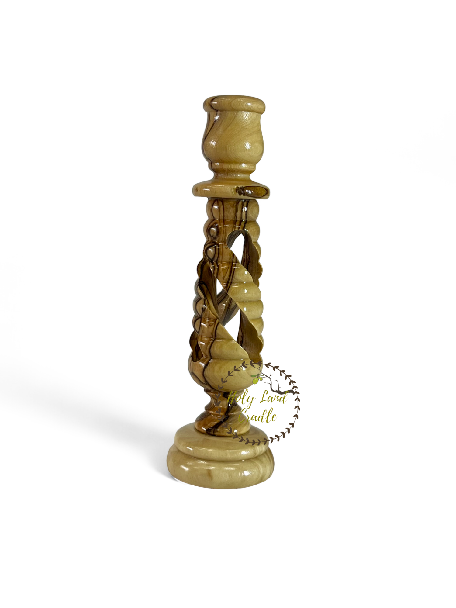 Illuminate your space with elegance and tradition using these handcrafted Olive Wood Spiral Candlesticks. Made in Bethlehem—the Holy Land—each candlestick is skillfully carved from genuine olive wood, showcasing a graceful spiral design that adds timeless beauty to any setting.