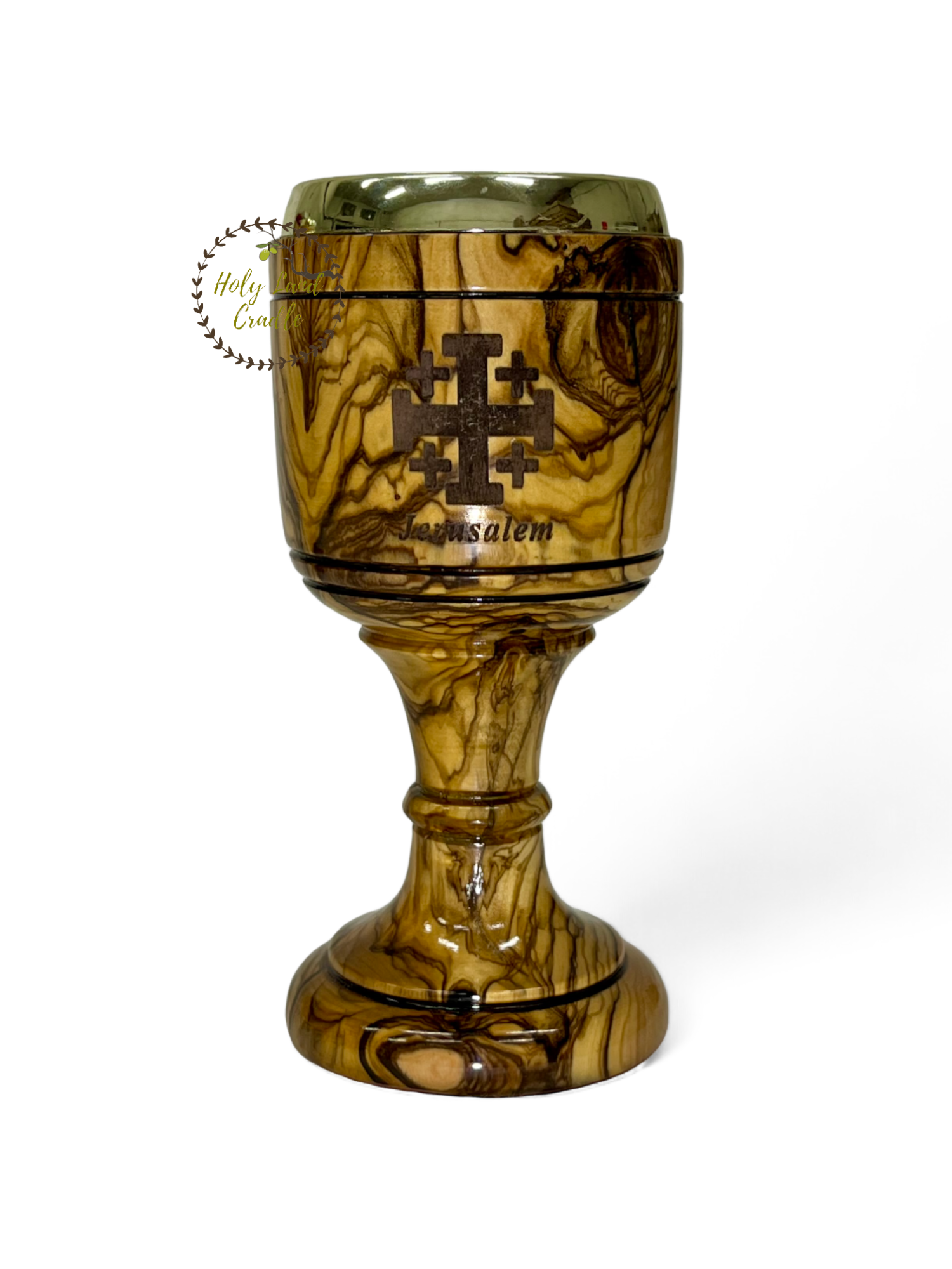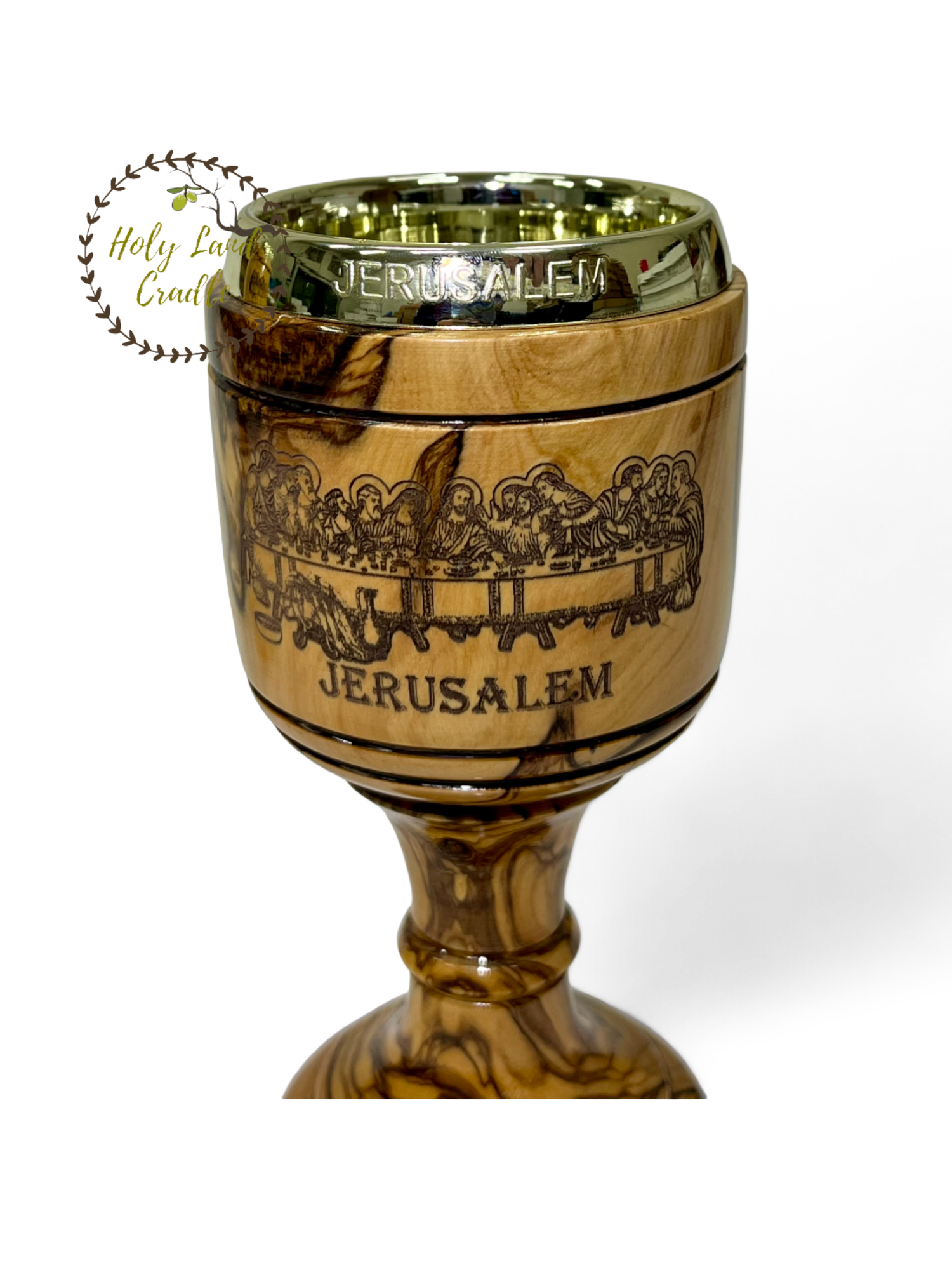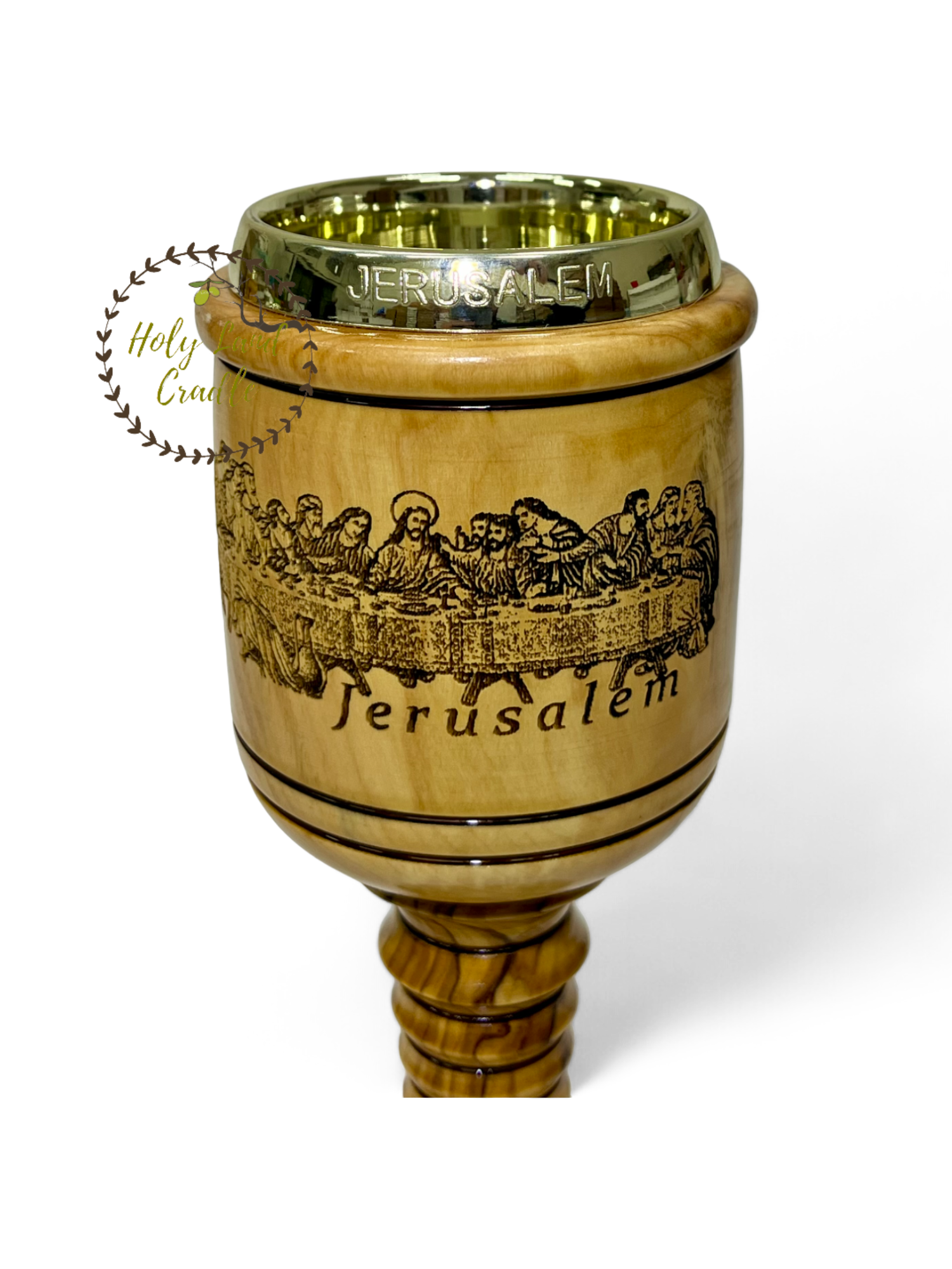 Olive Wood Chalice Last supper & Jerusalem Cross Engraved