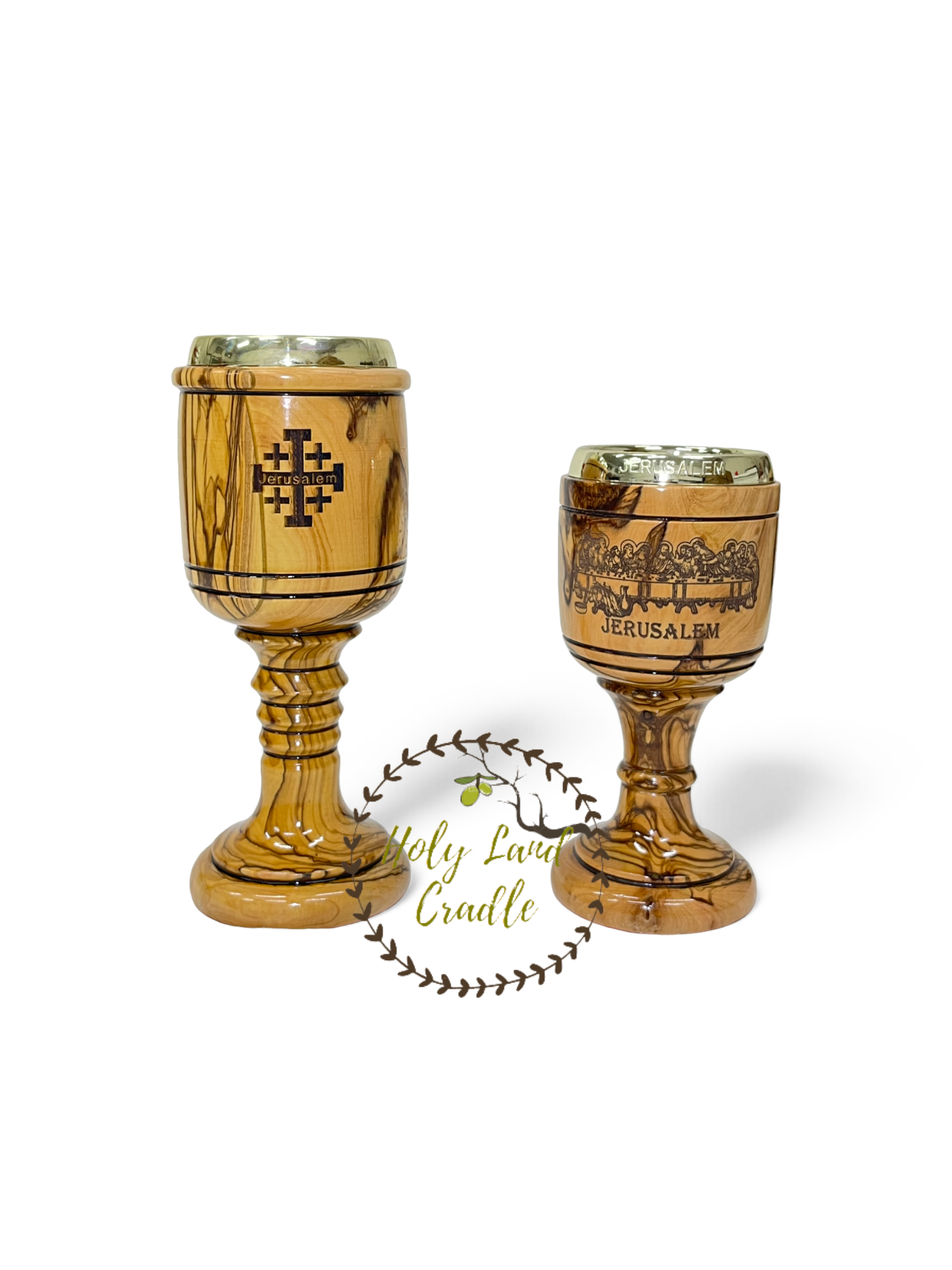 This sacred Olive Wood Chalice is a handcrafted masterpiece from the Holy Land, designed exclusively for churches and spiritual gatherings. Engraved with the Last Supper and the Jerusalem Cross in radiant golden brass, it serves as a powerful symbol of Christ’s sacrifice and the enduring covenant of faith.