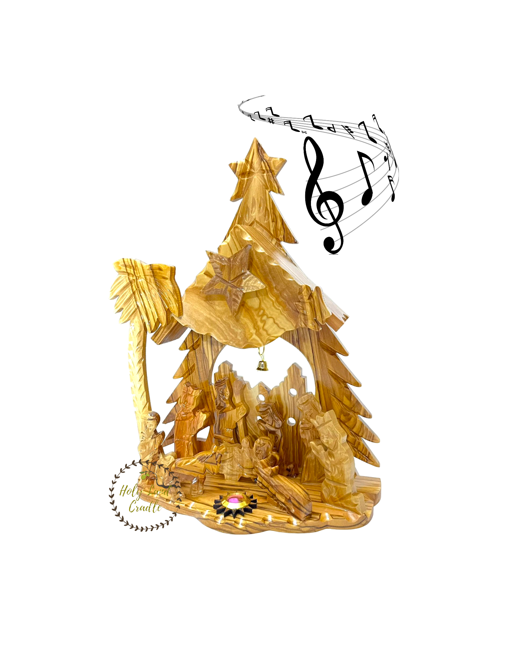 🎶 Olive Wood Musical Nativity Scene (Church-Shaped with Flexible Bell)