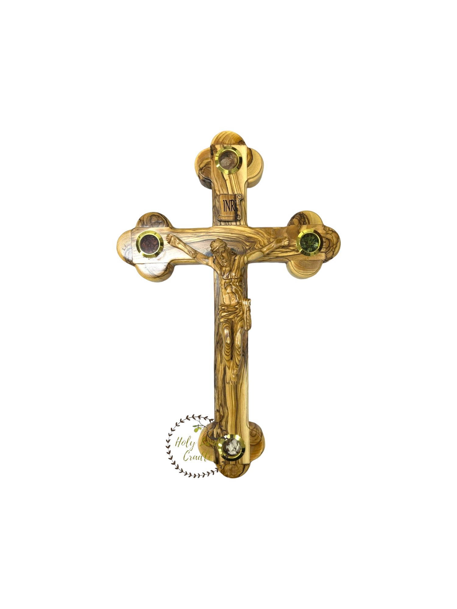 ✝️ Olive Wood Jerusalem Cross Wall Hanging with Corpus & Holy Land Elements