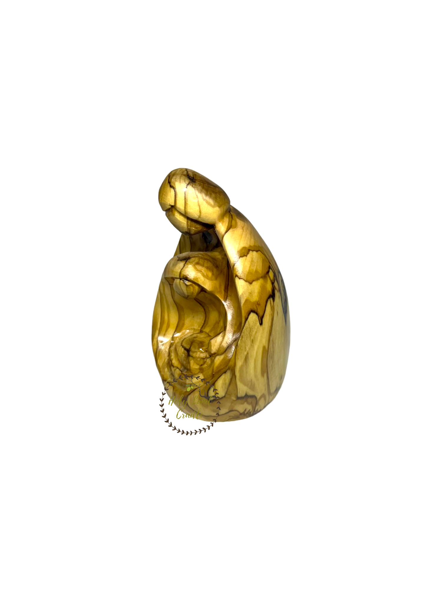 Olive Wood Curve Holy Family, comes with a certificate of authenticity. Made in Bethlehem the Holy land, place where Jesus was born. Joseph and Virgin Mary are bowing down towards the baby Jesus. "Therefore the Lord himself will give you a sign. Behold, the virgin will conceive, and bear a son, and shall call his name Emmanuel." Isaiah 7:14