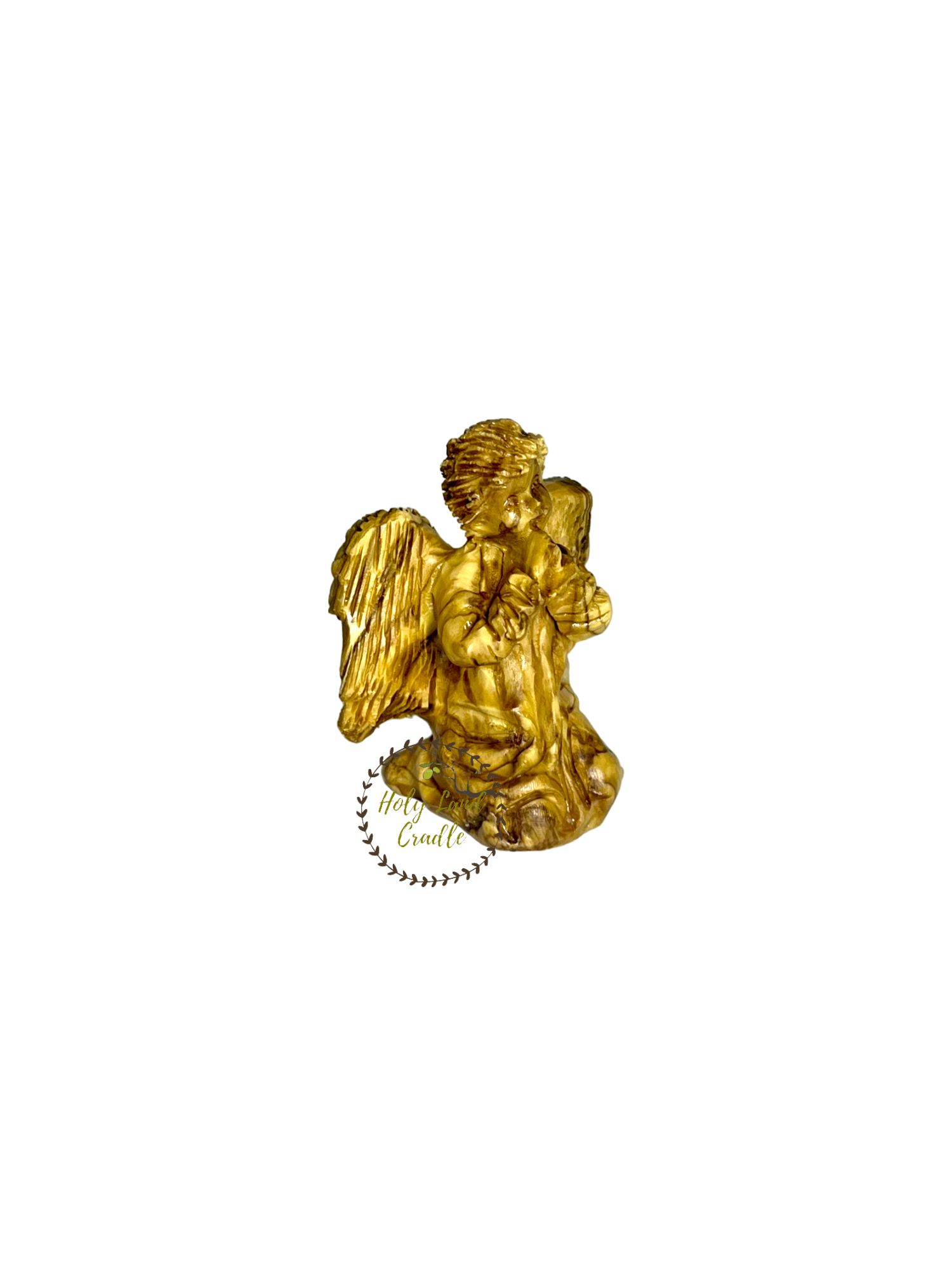 Olive Wood Hand Carved Kneeling Praying Angel, comes with a certificate of authenticity