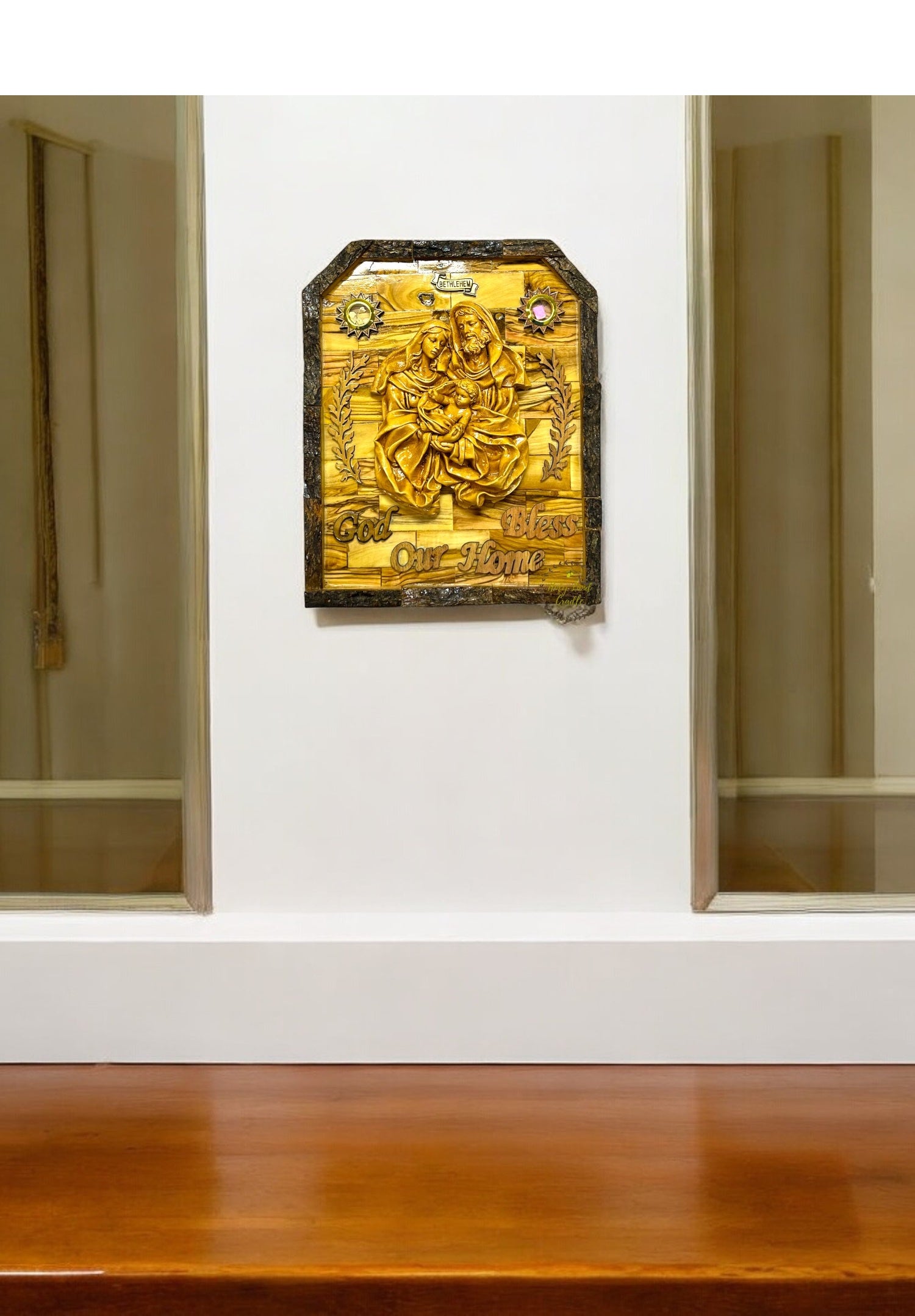 The intricate carving symbolizes love, faith, and divine unity, making this plaque a powerful reminder of the importance of family in the Christian tradition. Whether placed in your home, church, or prayer space, it radiates peace and spiritual grace.