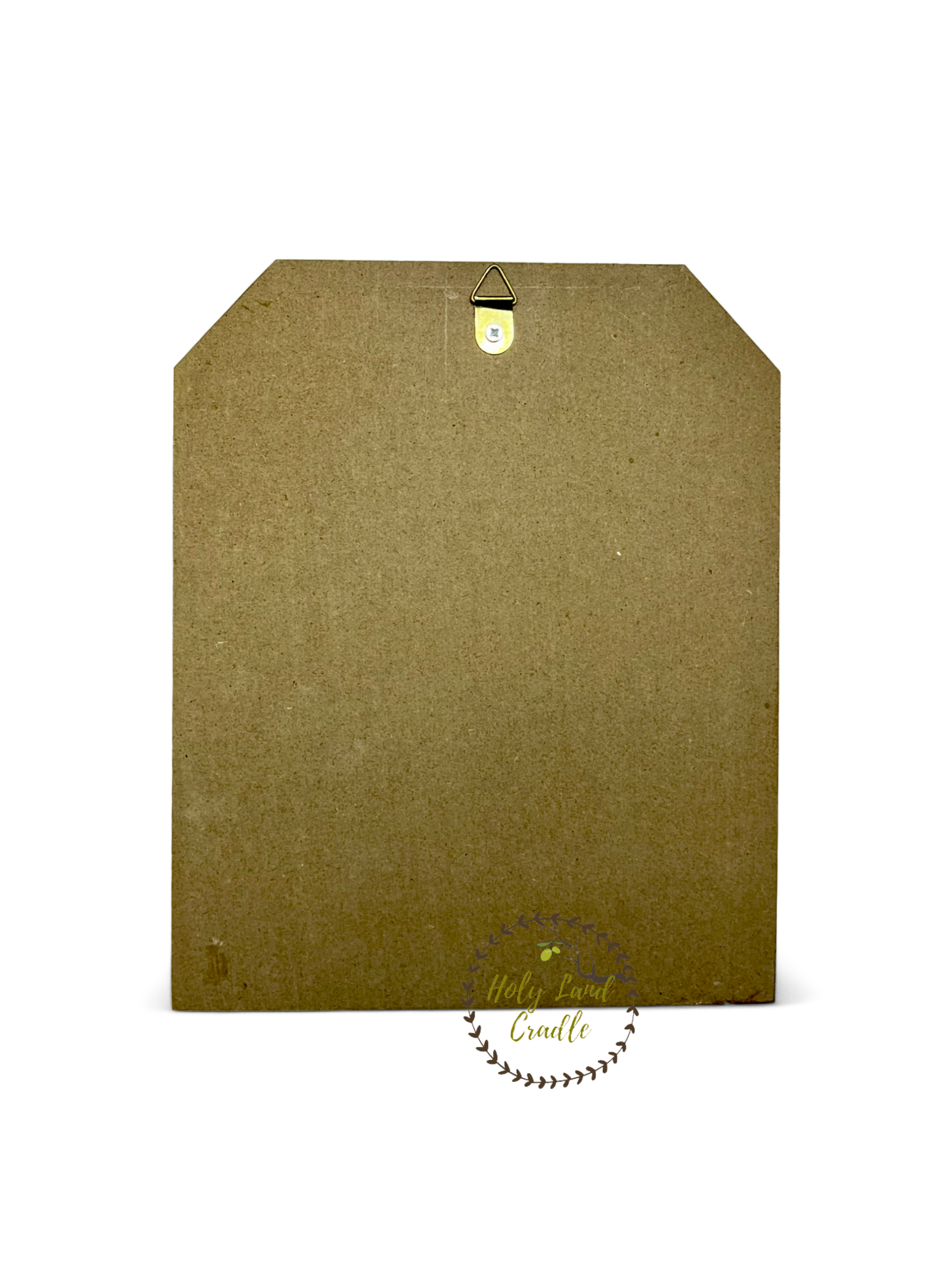 This exquisite olive wood plaque is a sacred tribute to the Holy Family—Jesus, Mary, and Joseph—captured in a moment of serene devotion. Handcrafted in Bethlehem by Christian artisans, each piece is carved from genuine olive wood sourced from ancient trees in the Holy Land and framed with preserved natural bark, giving it a rustic, organic beauty that’s truly one-of-a-kind.