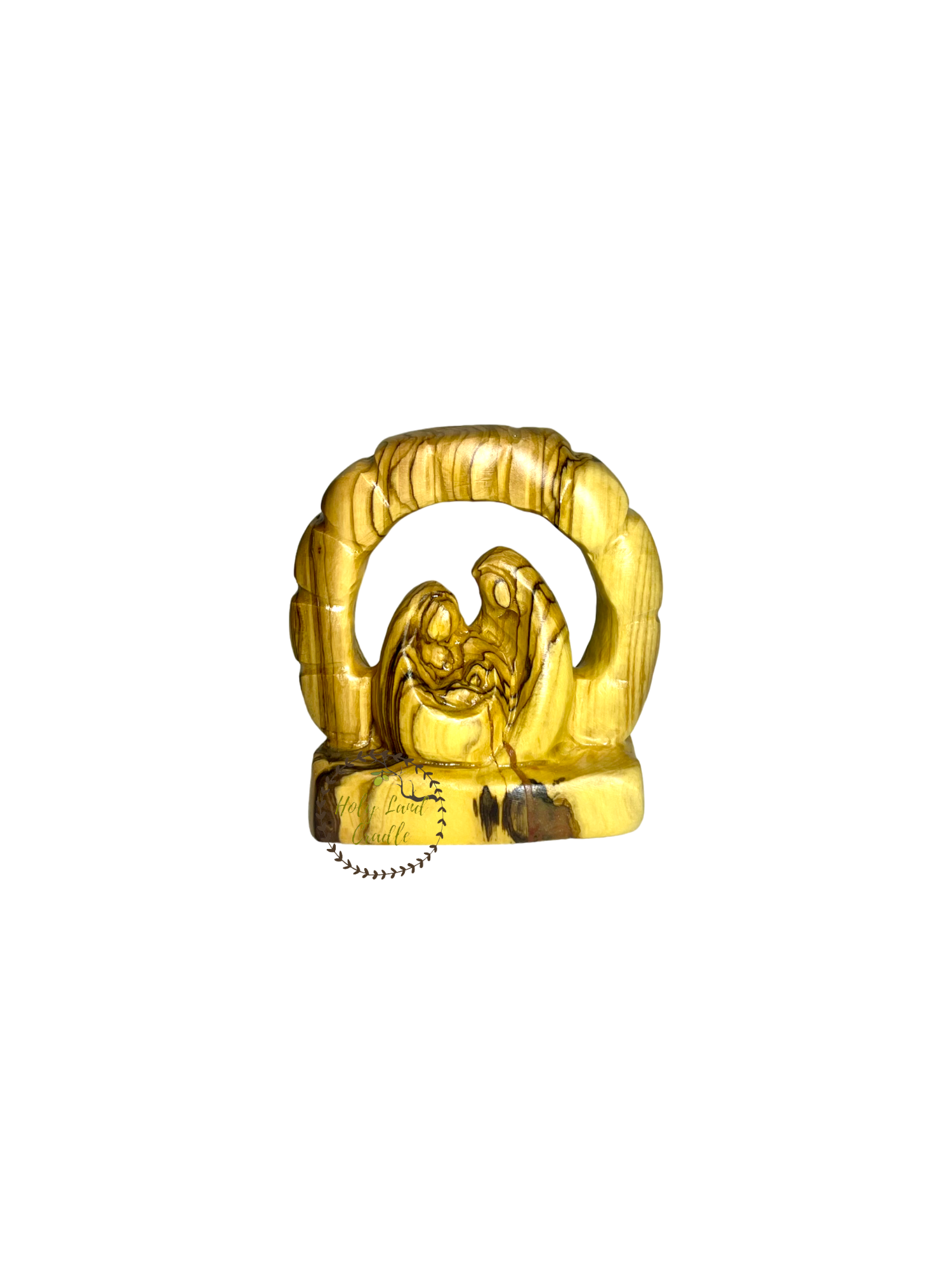 Olive Wood Holy Family in Curve Shape, Comes with a certificate of authenticity.