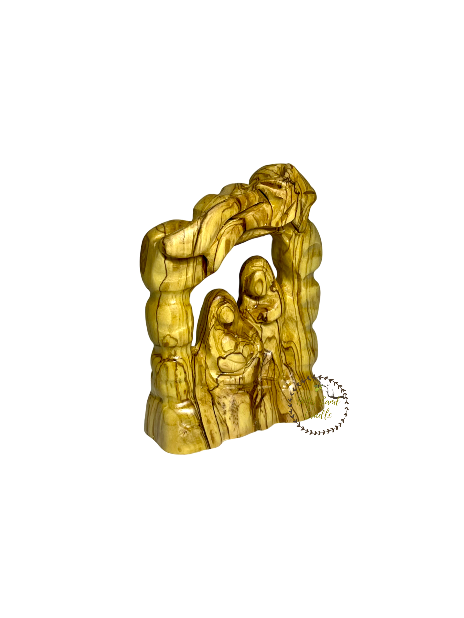 This carved piece is made from locally sourced olive wood and crafted by our Christian olive wood carvers in Bethlehem the Holy Land, In this statue, the Holy Family is inside the star of Bethlehem, . This is ideal for either home or office, it will make a most treasured gift and will serve as a constant reminder of the Holy family.