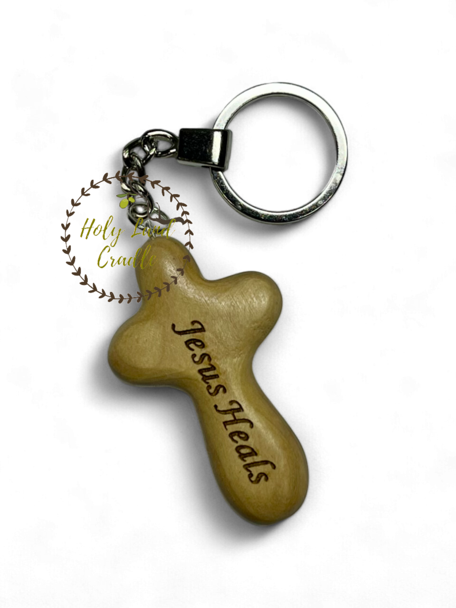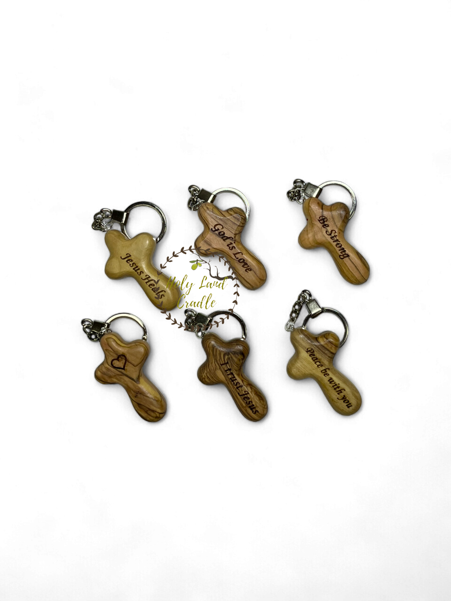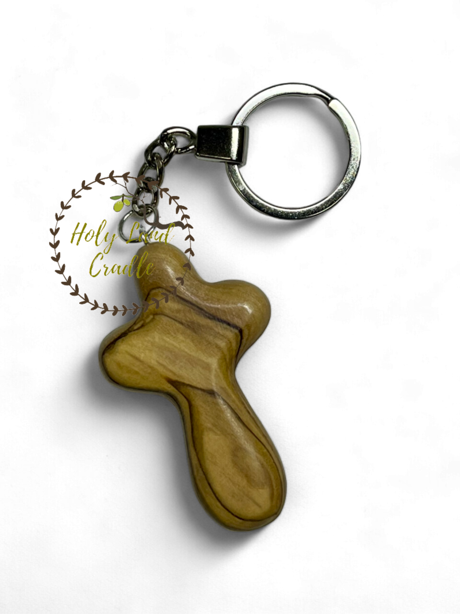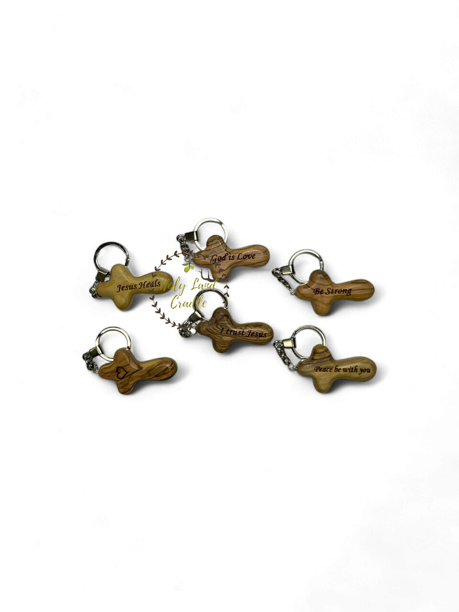 Olive Wood Comfort Cross Key chain engraved on Olive Wood Cross,