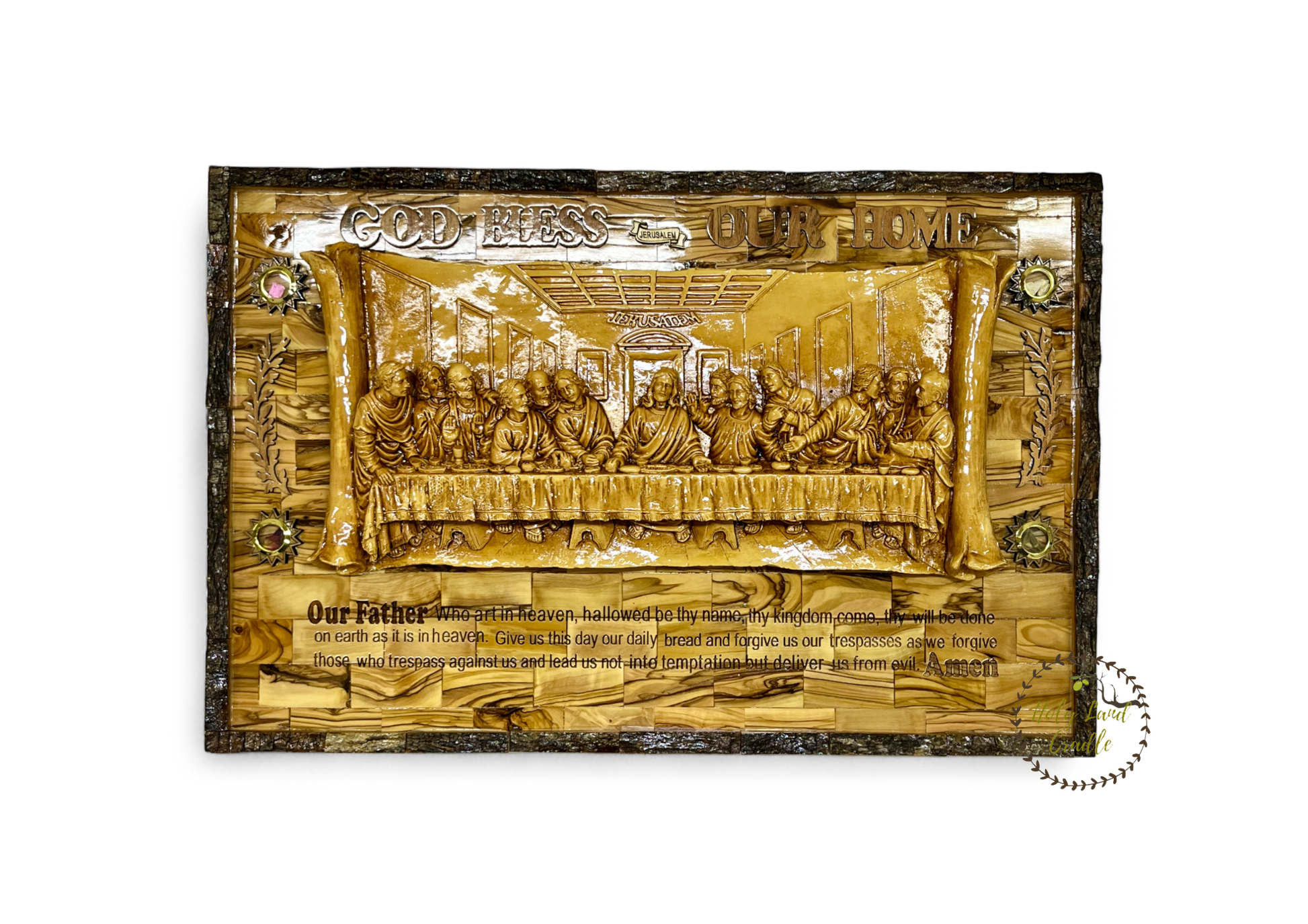 Olive Wood Last Supper with Our Father Prayer Engraved