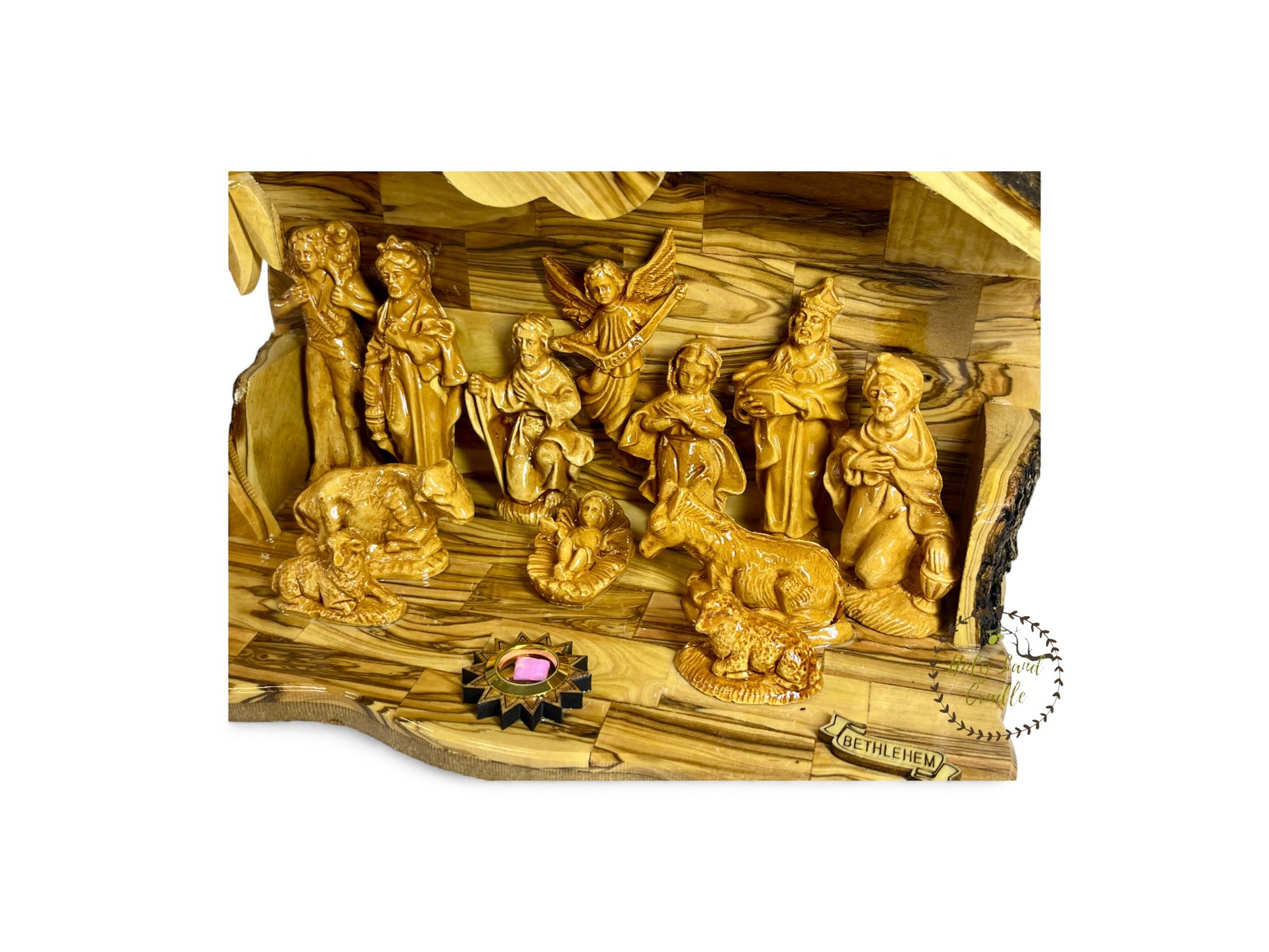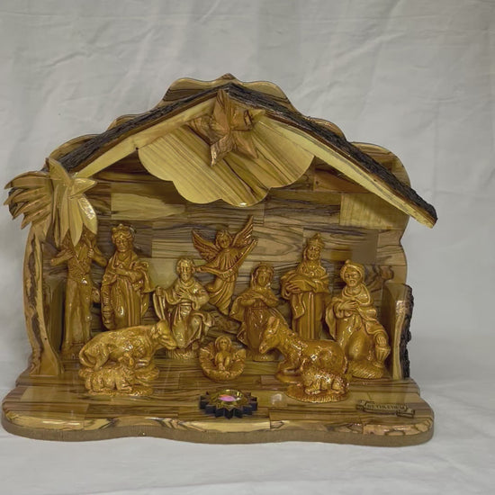 Olive Wood Nativity made in Bethlehem, the Holy Land echoing the events of the night Joseph and Mary made a humble cradle to baby Jesus, this nativity makes a perfect Christmas gift which comes from the place where Jesus was born.