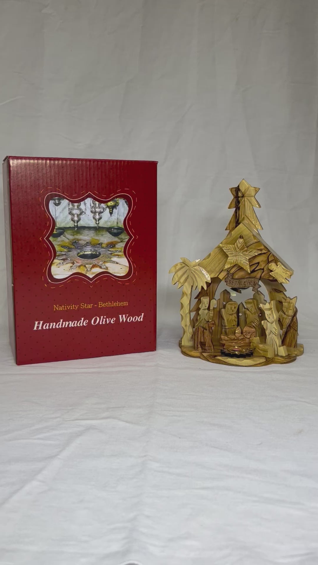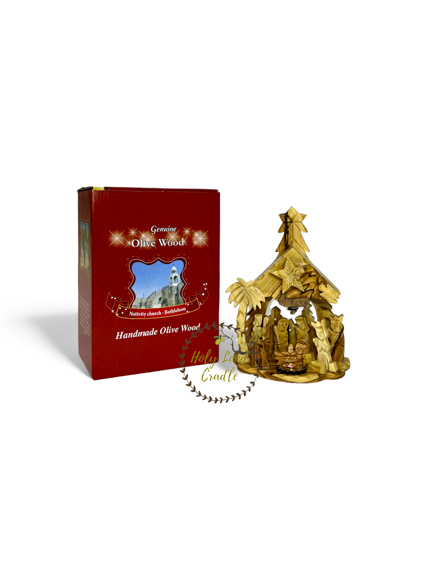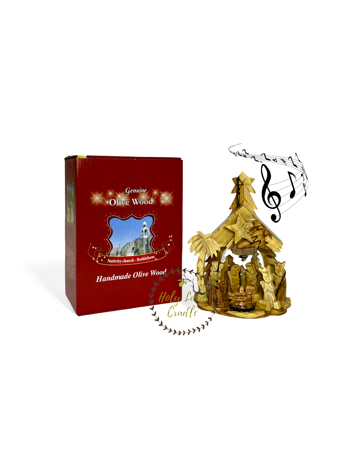 Olive Wood musical nativity scene (silent night song) with Olive Wood figures (Holy Family) Comes with a certificate of authenticity