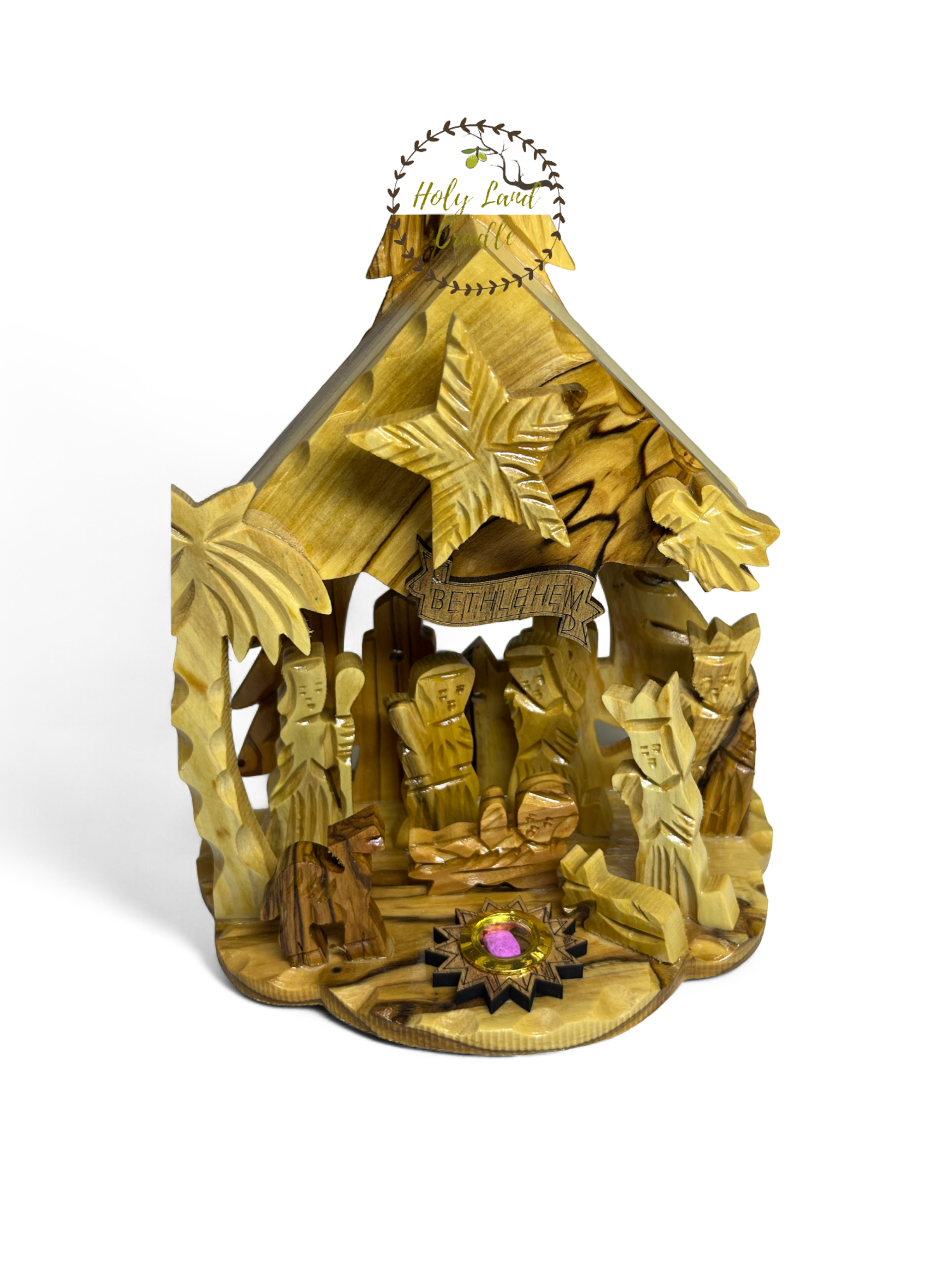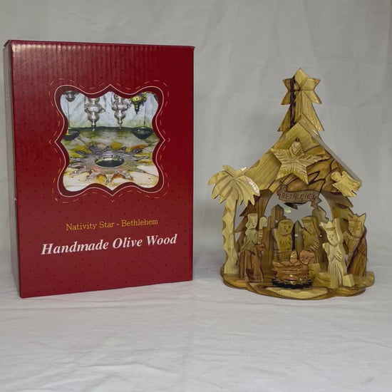 Olive Wood Nativity made in Bethlehem, the Holy Land echoing the events of the night Joseph and Mary made a humble cradle to baby Jesus, this nativity makes a perfect Christmas gift which comes from the place where Jesus was born.