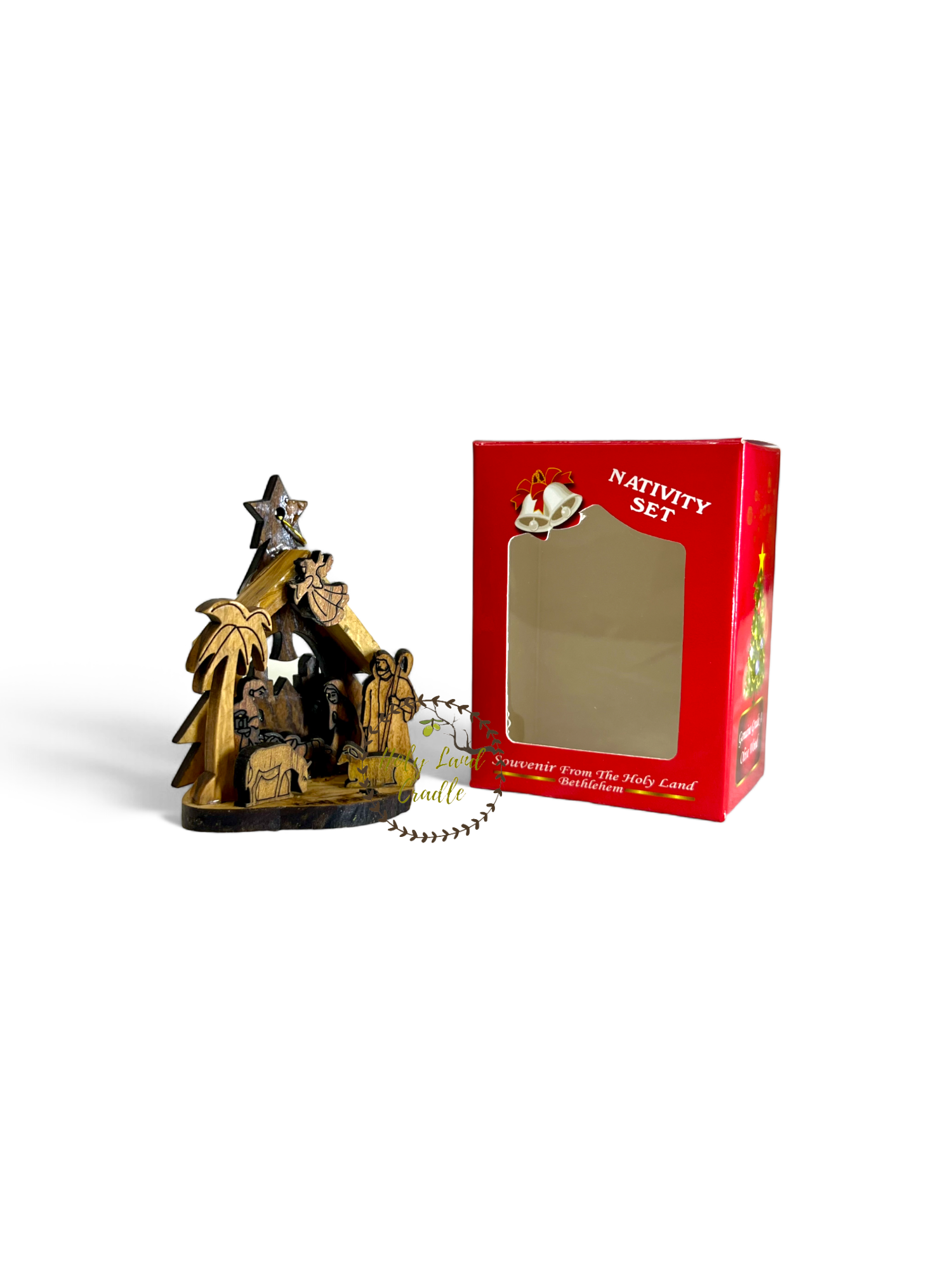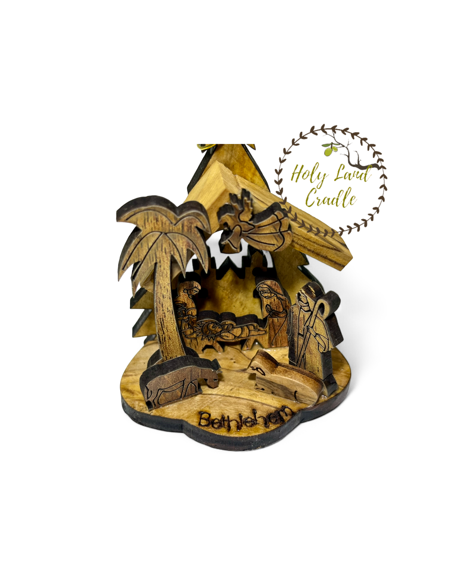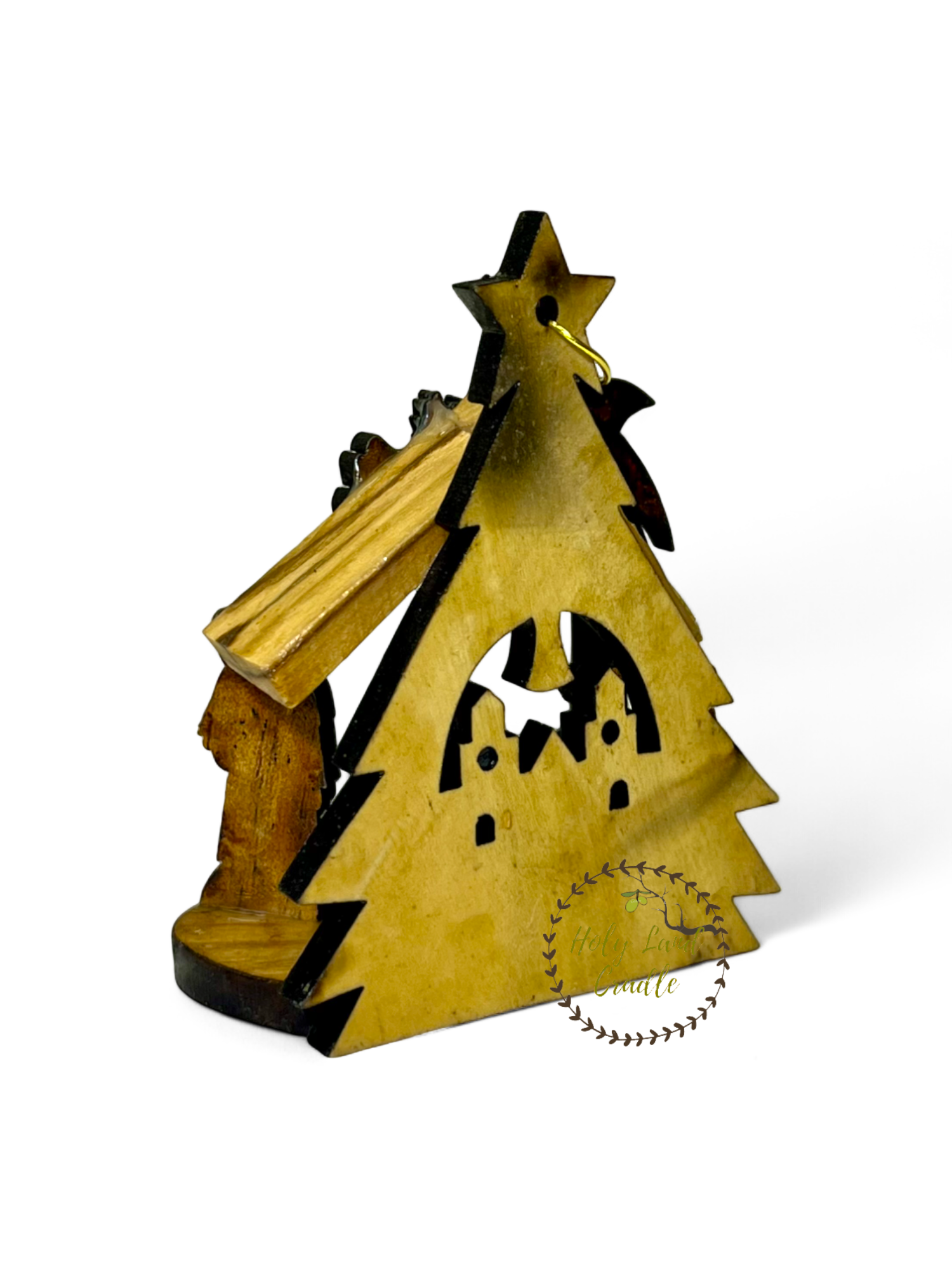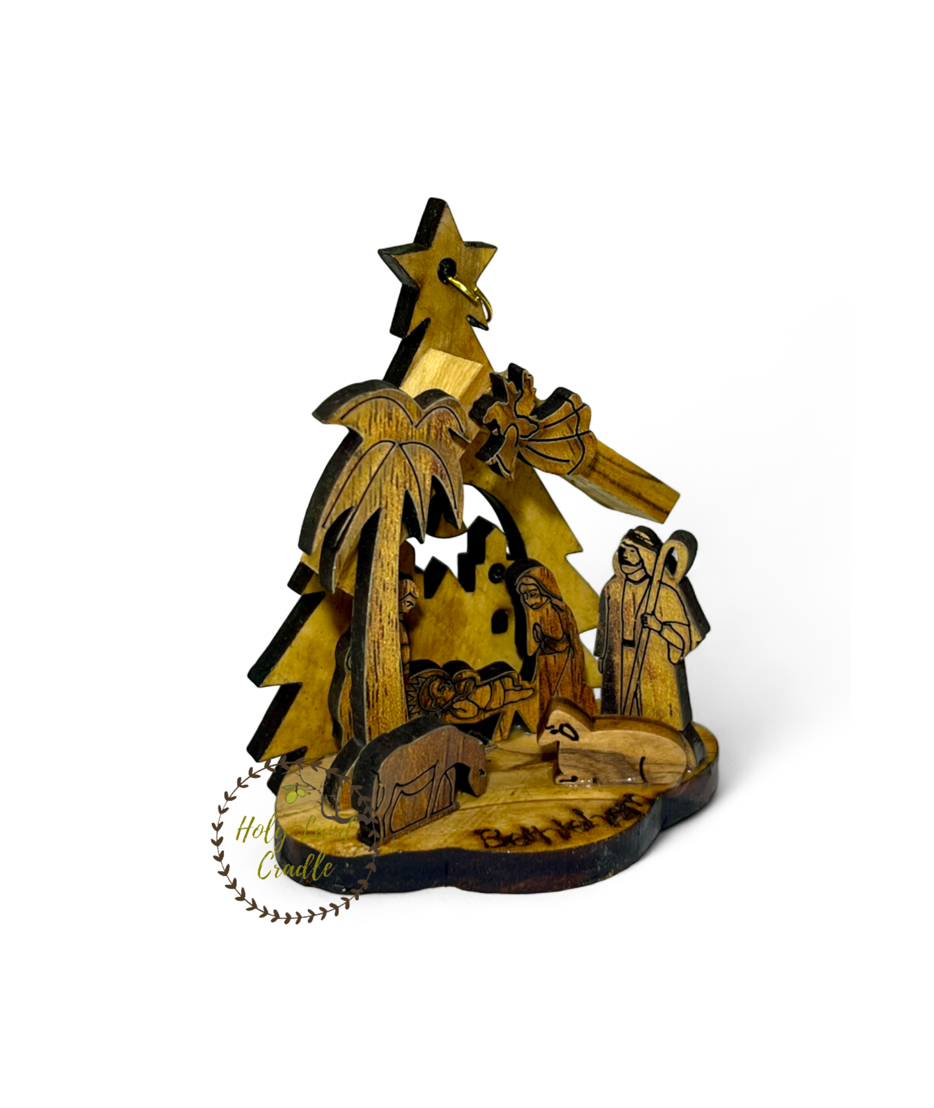 Olive Wood Nativity Ornament In A Christmas Box, Comes with a certificate of authenticity.