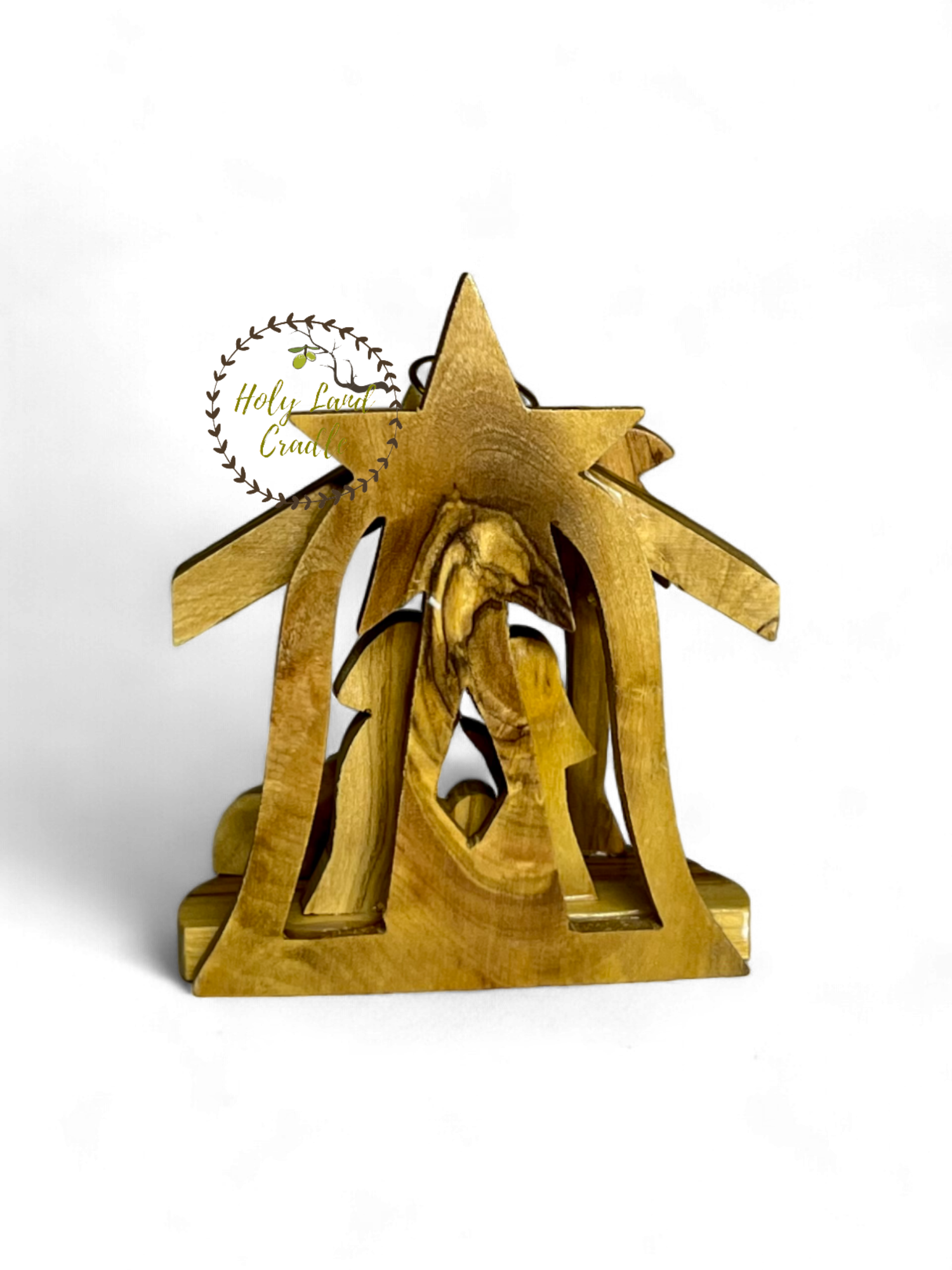 Olive Wood Ornament with Bell & Star Shape Wall, Comes with a certificate of authenticity