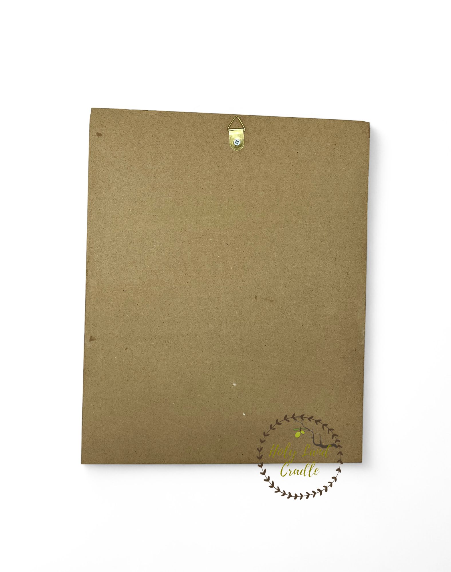 Honor the strength and protection of St. Michael with this beautifully crafted Olive Wood Plaque. Handcrafted in Bethlehem, this plaque features a detailed depiction of St. Michael, intricately carved from genuine olive wood and framed by natural bark, which enhances its rustic and authentic appeal.