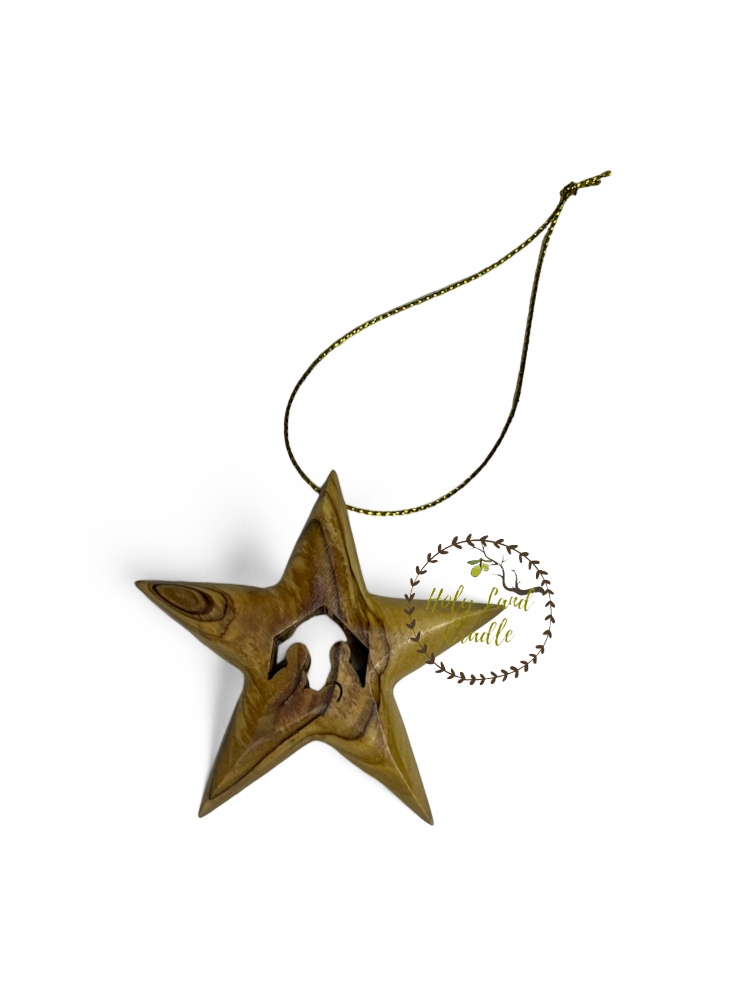 Made by our families in Bethlehem, this beautiful Olive Wood Star Ornament with Holy Family engraved is made from genuine olive wood. Make a perfect Christmas gift from Bethlehem the place where Jesus was born,