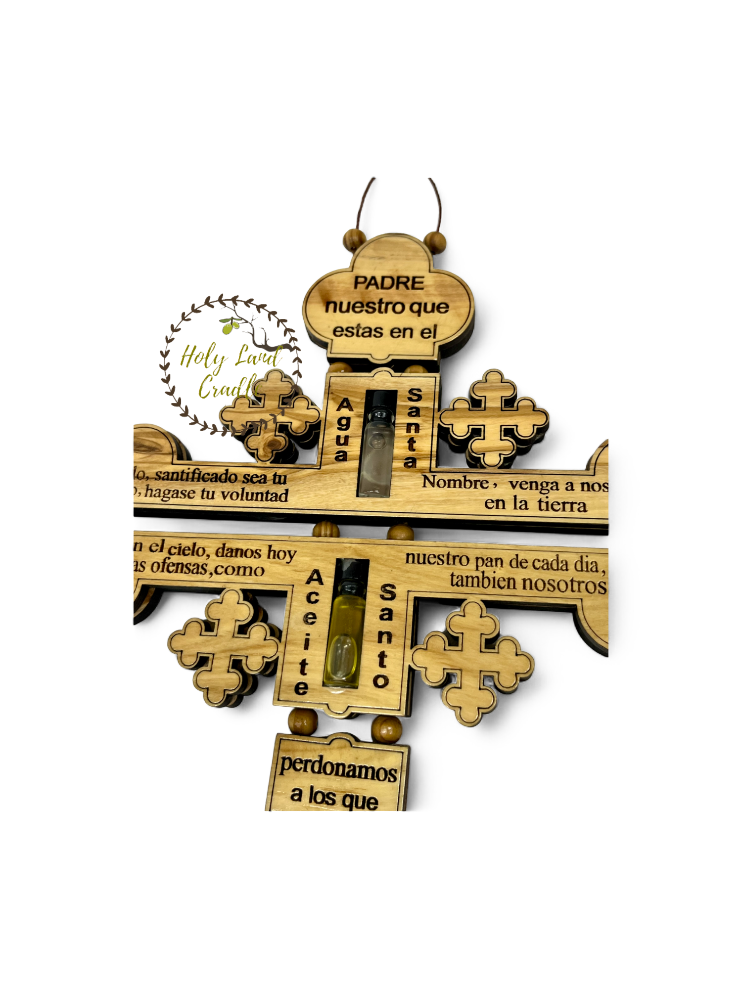 Overview: Olive Wood The Lord's Prayer Cross With Oil, Water and Incense, Comes with a certificate of authenticity