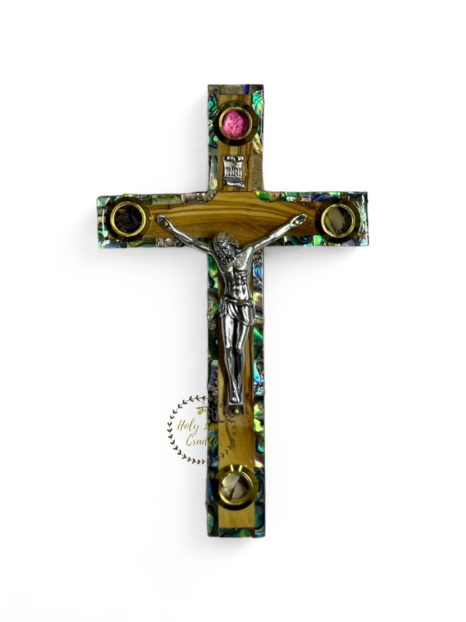 Olive wood With Mother of Pearl Frame wall Cross with Corpus