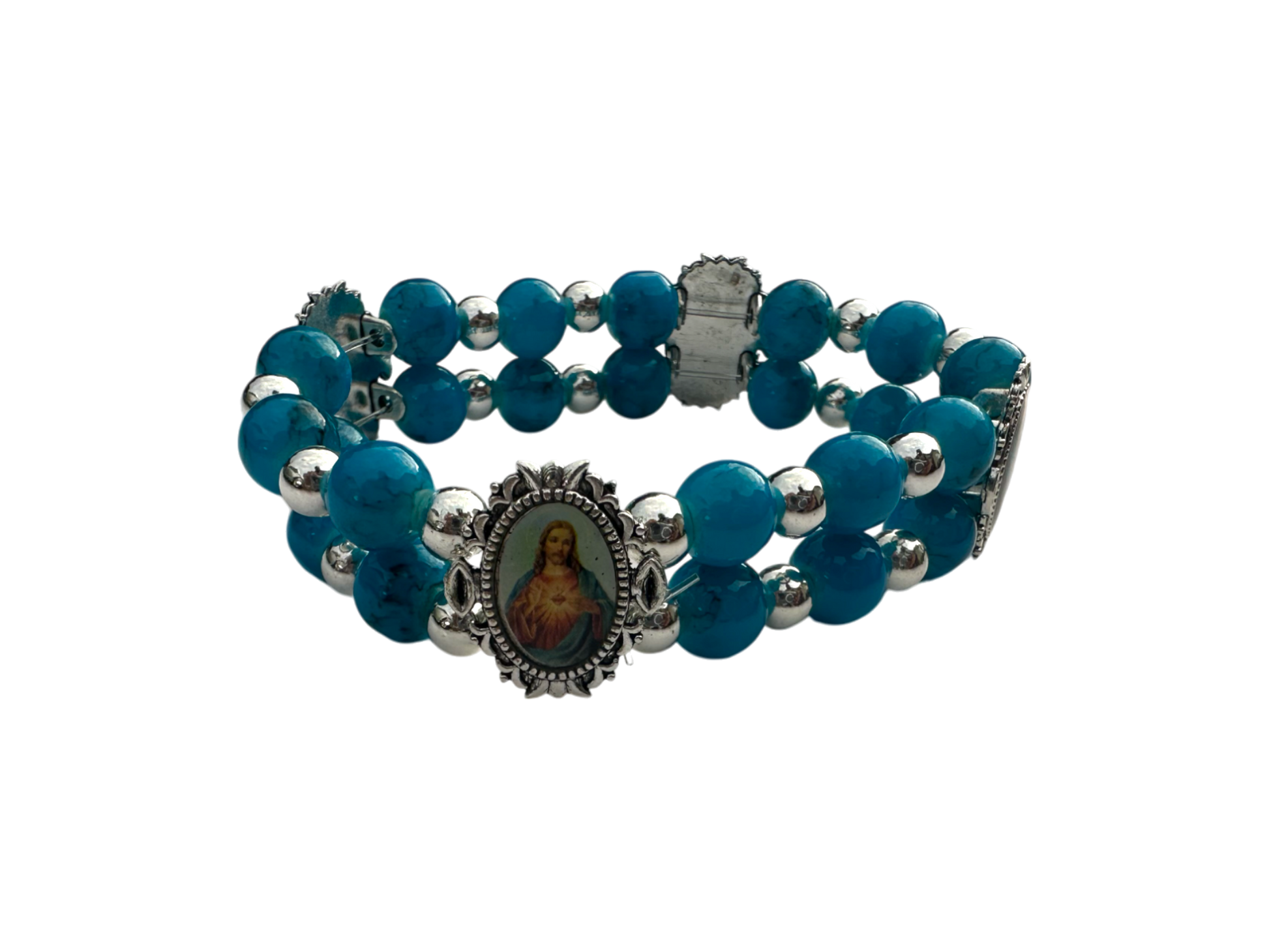 Round Blue Malachite Double Bracelet with 4 icons, comes with a certificate of authenticity.