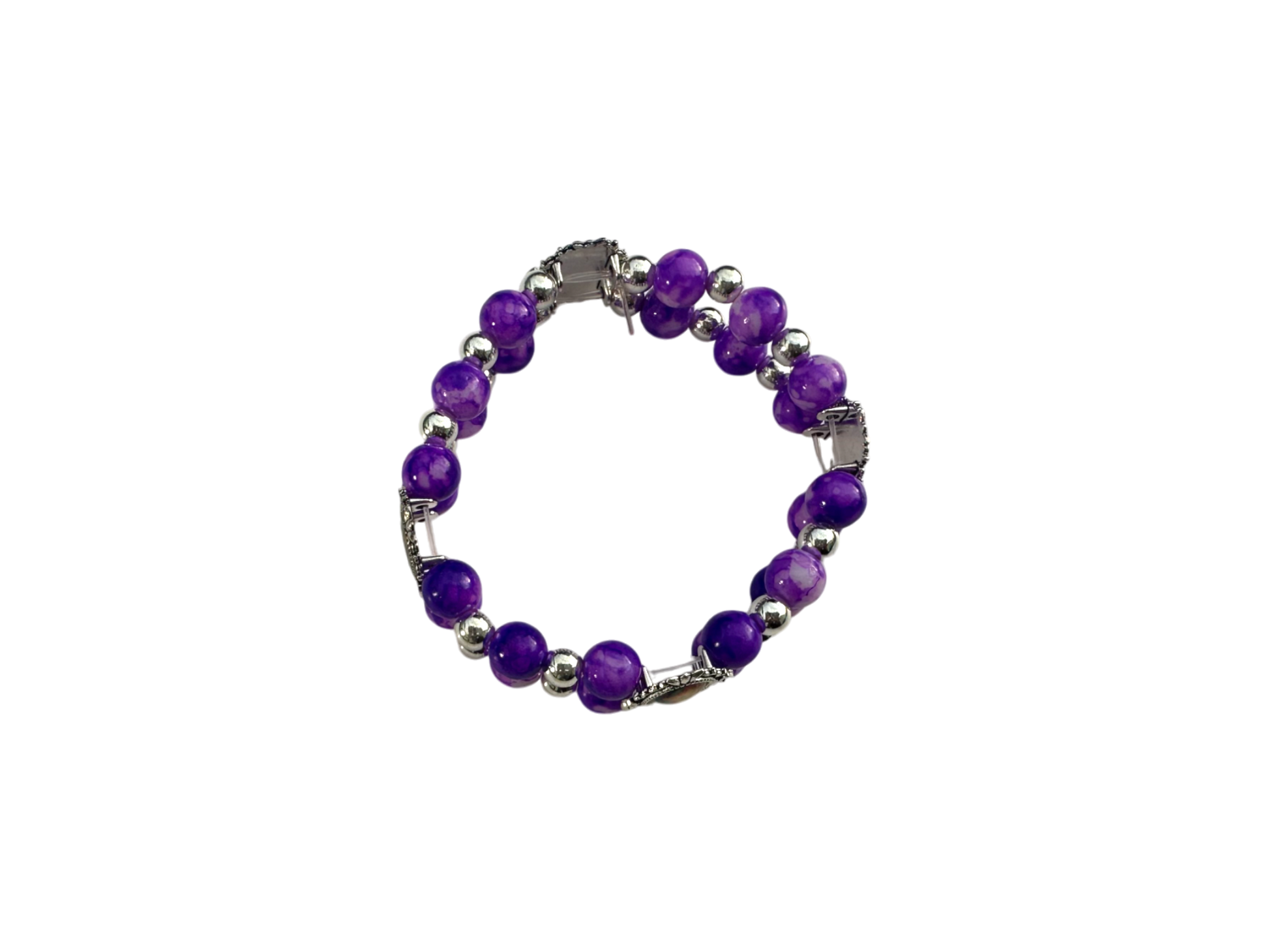Round Violet Malachite Double Bracelet